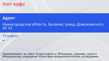 Уют, кафе по адресу Нижегородская область, Балахна, улица Дзержинского, 26 к1 в дальнейшем Организация, размещена в следующих категориях: