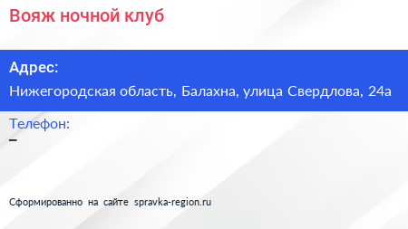 Вояж, ночной клуб по адресу Нижегородская область, Балахна, улица Свердлова, 24а в дальнейшем Организация, размещена в следующих категориях: