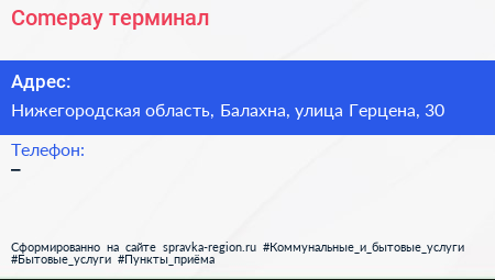 Comepay, терминал по адресу Нижегородская область, Балахна, улица Герцена, 30 в дальнейшем Организация, размещена в следующих категориях: