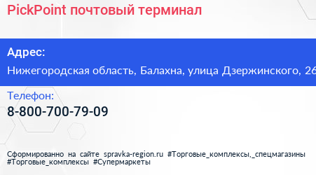 PickPoint, почтовый терминал по адресу Нижегородская область, Балахна, улица Дзержинского, 26 в дальнейшем Организация, размещена в следующих категориях: