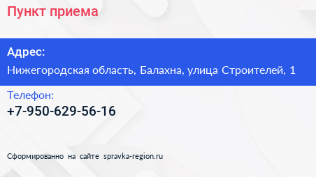 Пункт приема по адресу Нижегородская область, Балахна, улица Строителей, 1 в дальнейшем Организация, размещена в следующих категориях: