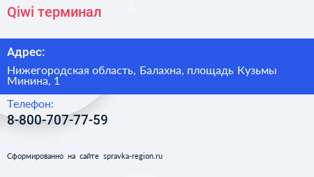 Qiwi, терминал по адресу Нижегородская область, Балахна, площадь Кузьмы Минина, 1 в дальнейшем Организация, размещена в следующих категориях: