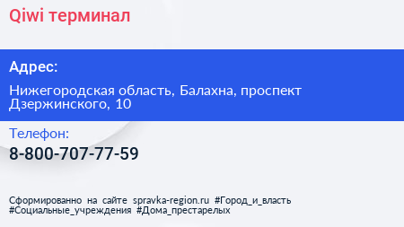 Qiwi, терминал по адресу Нижегородская область, Балахна, проспект Дзержинского, 10 в дальнейшем Организация, размещена в следующих категориях: