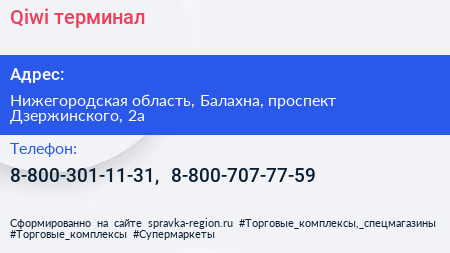Qiwi, терминал по адресу Нижегородская область, Балахна, проспект Дзержинского, 2а в дальнейшем Организация, размещена в следующих категориях: