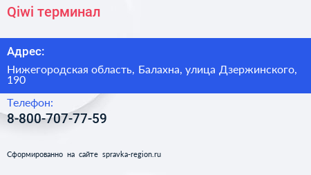 Qiwi, терминал по адресу Нижегородская область, Балахна, улица Дзержинского, 190 в дальнейшем Организация, размещена в следующих категориях:
