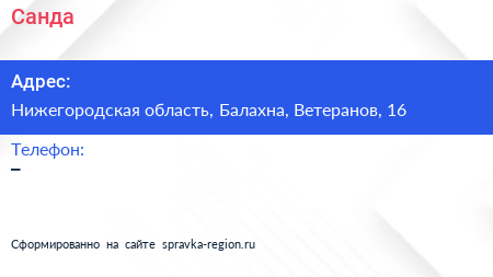 Санда по адресу Нижегородская область, Балахна, Ветеранов, 16 в дальнейшем Организация, размещена в следующих категориях: