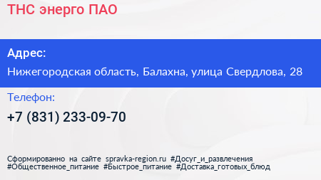 ТНС энерго, ПАО по адресу Нижегородская область, Балахна, улица Свердлова, 28 в дальнейшем Организация, размещена в следующих категориях: