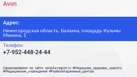 Avon по адресу Нижегородская область, Балахна, площадь Кузьмы Минина, 1 в дальнейшем Организация, размещена в следующих категориях: