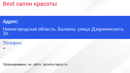 Best, салон красоты по адресу Нижегородская область, Балахна, улица Дзержинского, 26 в дальнейшем Организация, размещена в следующих категориях: