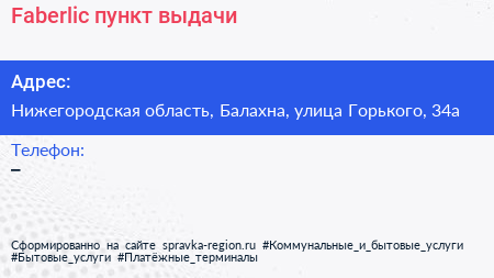 Faberlic, пункт выдачи по адресу Нижегородская область, Балахна, улица Горького, 34а в дальнейшем Организация, размещена в следующих категориях: