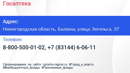 Госаптека по адресу Нижегородская область, Балахна, улица Энгельса, 37 в дальнейшем Организация, размещена в следующих категориях: