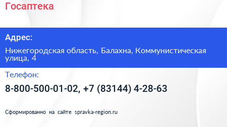 Госаптека по адресу Нижегородская область, Балахна, Коммунистическая улица, 4 в дальнейшем Организация, размещена в следующих категориях: