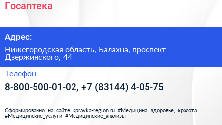 Госаптека по адресу Нижегородская область, Балахна, проспект Дзержинского, 44 в дальнейшем Организация, размещена в следующих категориях: