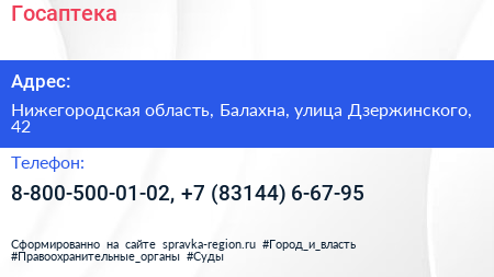 Госаптека по адресу Нижегородская область, Балахна, улица Дзержинского, 42 в дальнейшем Организация, размещена в следующих категориях: