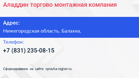 Аладдин, торгово-монтажная компания по адресу Нижегородская область, Балахна, в дальнейшем Организация, размещена в следующих категориях: