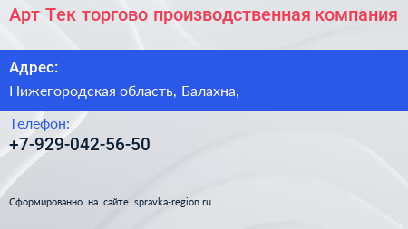 Арт-Тек, торгово-производственная компания по адресу Нижегородская область, Балахна, в дальнейшем Организация, размещена в следующих категориях: