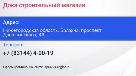 Дока, строительный магазин по адресу Нижегородская область, Балахна, проспект Дзержинского, 48 в дальнейшем Организация, размещена в следующих категориях: