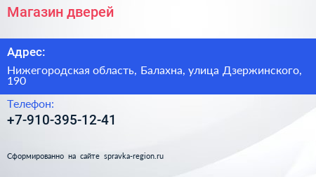 Магазин дверей по адресу Нижегородская область, Балахна, улица Дзержинского, 190 в дальнейшем Организация, размещена в следующих категориях: