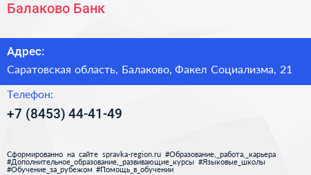 Балаково-Банк по адресу Саратовская область, Балаково, Факел Социализма, 21 в дальнейшем Организация, размещена в следующих категориях: