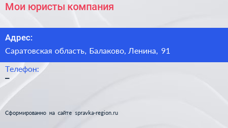 Мои юристы, компания по адресу Саратовская область, Балаково, Ленина, 91 в дальнейшем Организация, размещена в следующих категориях: