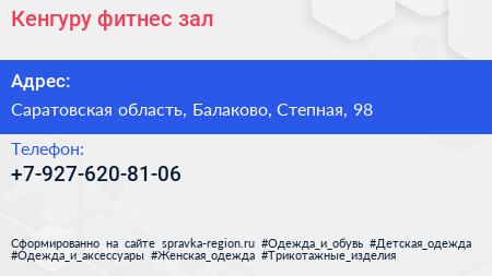 Кенгуру, фитнес-зал по адресу Саратовская область, Балаково, Степная, 98 в дальнейшем Организация, размещена в следующих категориях: