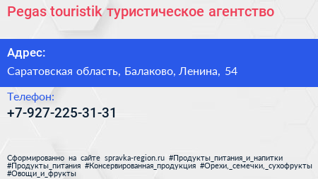 Pegas touristik, туристическое агентство по адресу Саратовская область, Балаково, Ленина, 54 в дальнейшем Организация, размещена в следующих категориях: