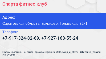 Спарта, фитнес-клуб по адресу Саратовская область, Балаково, Трнавская, 32/1 в дальнейшем Организация, размещена в следующих категориях: