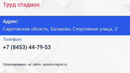 Труд, стадион по адресу Саратовская область, Балаково, Спортивная улица, 2 в дальнейшем Организация, размещена в следующих категориях: