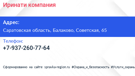 Иринати, компания по адресу Саратовская область, Балаково, Советская, 65 в дальнейшем Организация, размещена в следующих категориях: