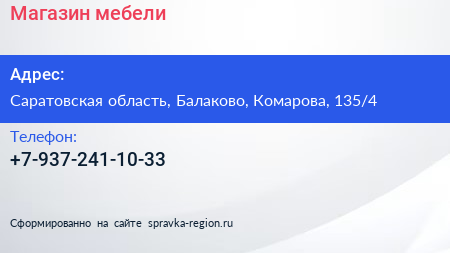 Магазин мебели по адресу Саратовская область, Балаково, Комарова, 135/4 в дальнейшем Организация, размещена в следующих категориях: