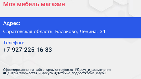 Моя мебель, магазин по адресу Саратовская область, Балаково, Ленина, 34 в дальнейшем Организация, размещена в следующих категориях: