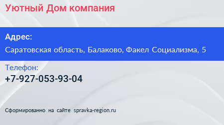 Уютный Дом, компания по адресу Саратовская область, Балаково, Факел Социализма, 5 в дальнейшем Организация, размещена в следующих категориях: