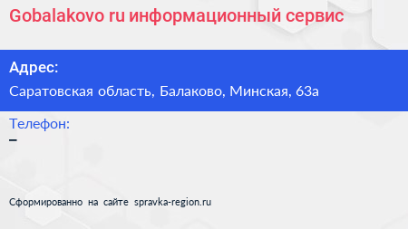 Gobalakovo.ru, информационный сервис по адресу Саратовская область, Балаково, Минская, 63а в дальнейшем Организация, размещена в следующих категориях: