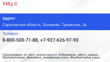 УИЦ С по адресу Саратовская область, Балаково, Трнавская, 3а в дальнейшем Организация, размещена в следующих категориях: