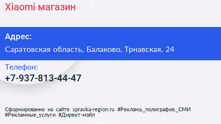 Xiaomi, магазин по адресу Саратовская область, Балаково, Трнавская, 24 в дальнейшем Организация, размещена в следующих категориях: