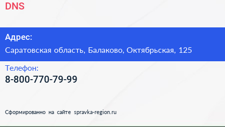 DNS по адресу Саратовская область, Балаково, Октябрьская, 125 в дальнейшем Организация, размещена в следующих категориях: