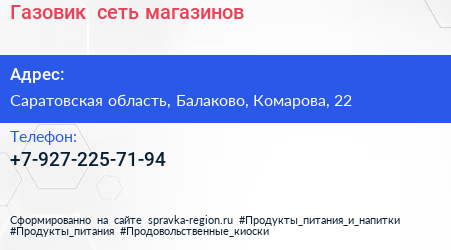Газовик+, сеть магазинов по адресу Саратовская область, Балаково, Комарова, 22 в дальнейшем Организация, размещена в следующих категориях: