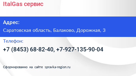 ItalGas, сервис по адресу Саратовская область, Балаково, Дорожная, 3 в дальнейшем Организация, размещена в следующих категориях: