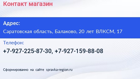Контакт, магазин по адресу Саратовская область, Балаково, 20 лет ВЛКСМ, 17 в дальнейшем Организация, размещена в следующих категориях: