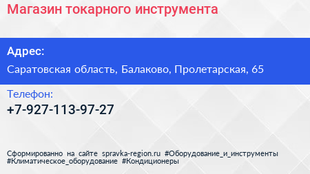 Магазин токарного инструмента по адресу Саратовская область, Балаково, Пролетарская, 65 в дальнейшем Организация, размещена в следующих категориях: