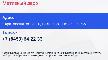 Метизный двор по адресу Саратовская область, Балаково, Шевченко, 42/1 в дальнейшем Организация, размещена в следующих категориях: