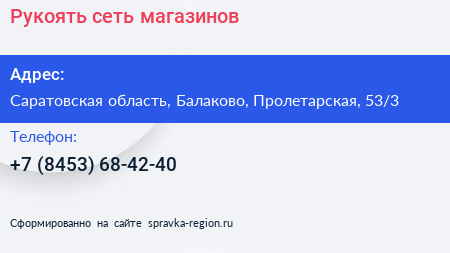 Рукоять, сеть магазинов по адресу Саратовская область, Балаково, Пролетарская, 53/3 в дальнейшем Организация, размещена в следующих категориях: