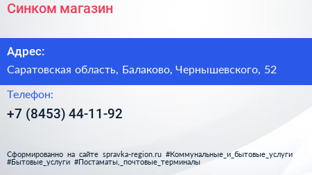 Синком, магазин по адресу Саратовская область, Балаково, Чернышевского, 52 в дальнейшем Организация, размещена в следующих категориях: