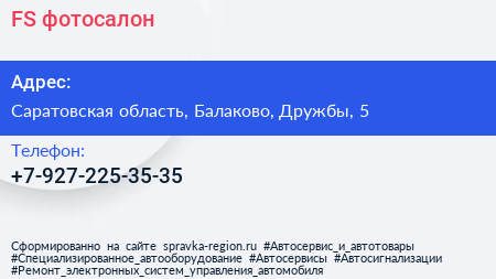 FS, фотосалон по адресу Саратовская область, Балаково, Дружбы, 5 в дальнейшем Организация, размещена в следующих категориях: