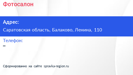 Фотосалон по адресу Саратовская область, Балаково, Ленина, 110 в дальнейшем Организация, размещена в следующих категориях:
