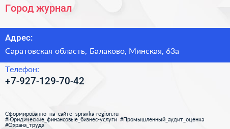 Город, журнал по адресу Саратовская область, Балаково, Минская, 63а в дальнейшем Организация, размещена в следующих категориях: