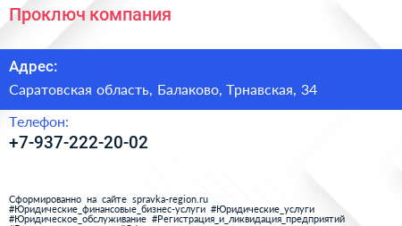 Проключ, компания по адресу Саратовская область, Балаково, Трнавская, 34 в дальнейшем Организация, размещена в следующих категориях: