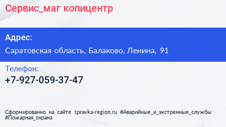 Сервис_маг, копицентр по адресу Саратовская область, Балаково, Ленина, 91 в дальнейшем Организация, размещена в следующих категориях: