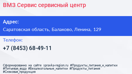 ВМЗ-Сервис, сервисный центр по адресу Саратовская область, Балаково, Ленина, 129 в дальнейшем Организация, размещена в следующих категориях: