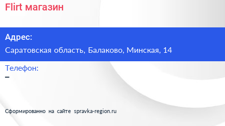 Flirt, магазин по адресу Саратовская область, Балаково, Минская, 14 в дальнейшем Организация, размещена в следующих категориях: